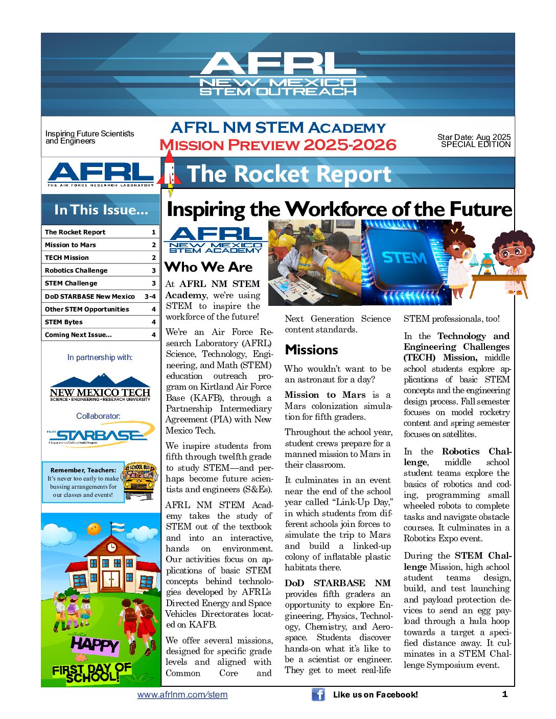 Newsletter Current Newsletter Newsletter Archives Click Here Subscribe to Newsletter Click Here Learn about our STEM journey! (505) 846-8042 stem@afrlnewmexico.com FollowFollowFollow